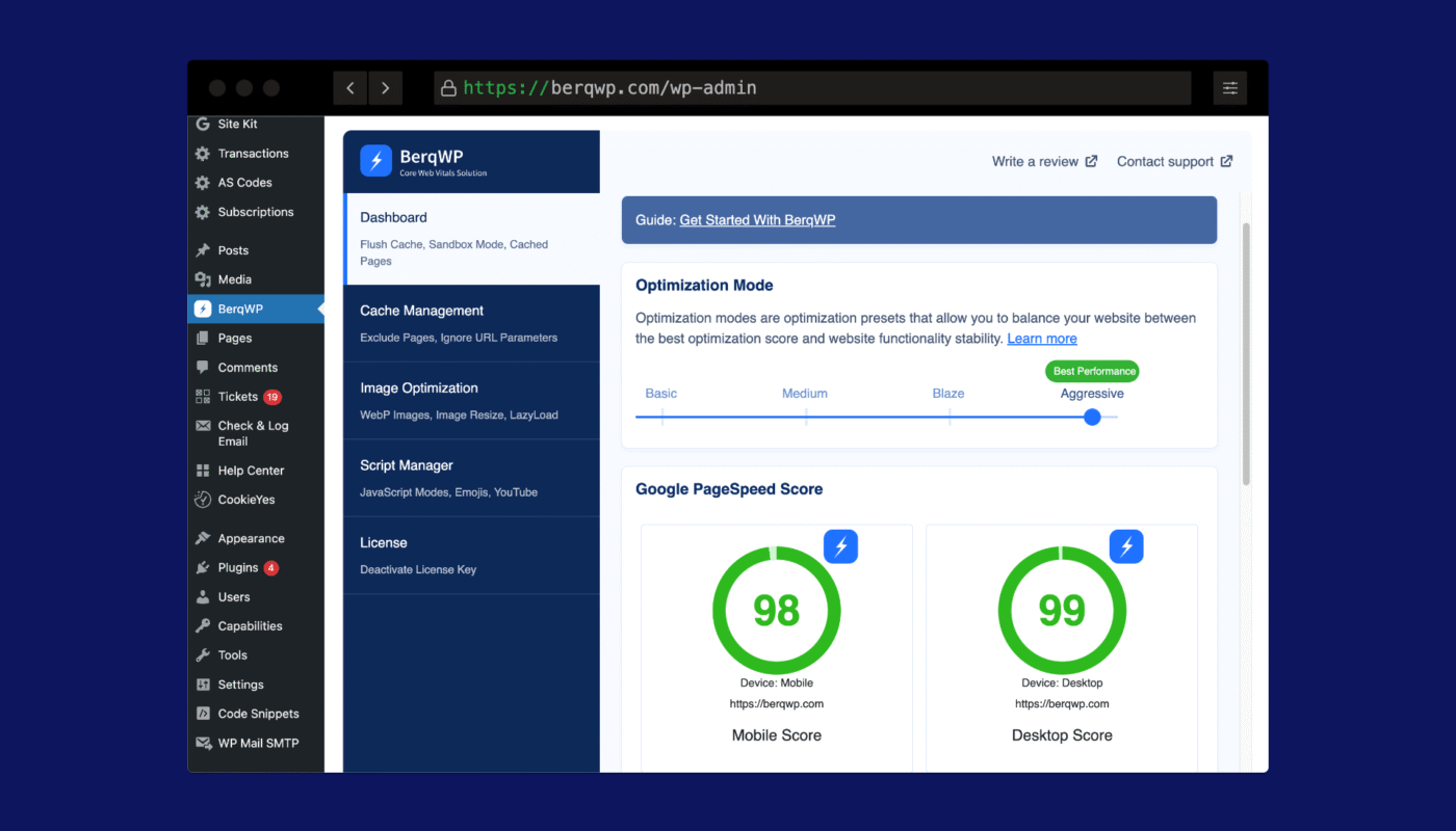 Experience lightning fast WordPress website speed. Boost search engine rankings by passing Core Web Vitals without any technical skills. BerqWP is a 100% automatic speed optimization plugin that ensures your website passes the core web vitals assessment. Additionally, it boosts your website speed score to 90+ for mobile and desktop devices.