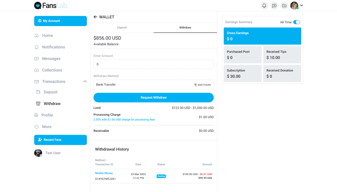 FansLab is a subscription-based content platform where creators can earn money by sharing exclusive content with their subscribers. Creators (also called content creators or influencers) can earn money through Monthly Subscriptions. Creators set a monthly subscription fee, and Fans must subscribe to access the creator’s exclusive content (photos, videos, livestreams, etc.).